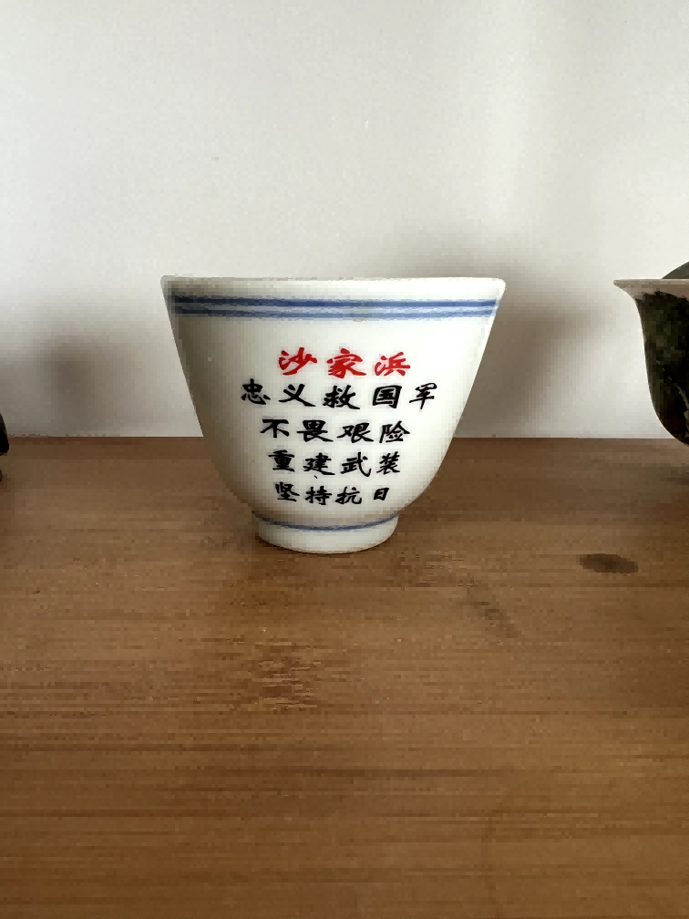 粉彩山水题字纹杯