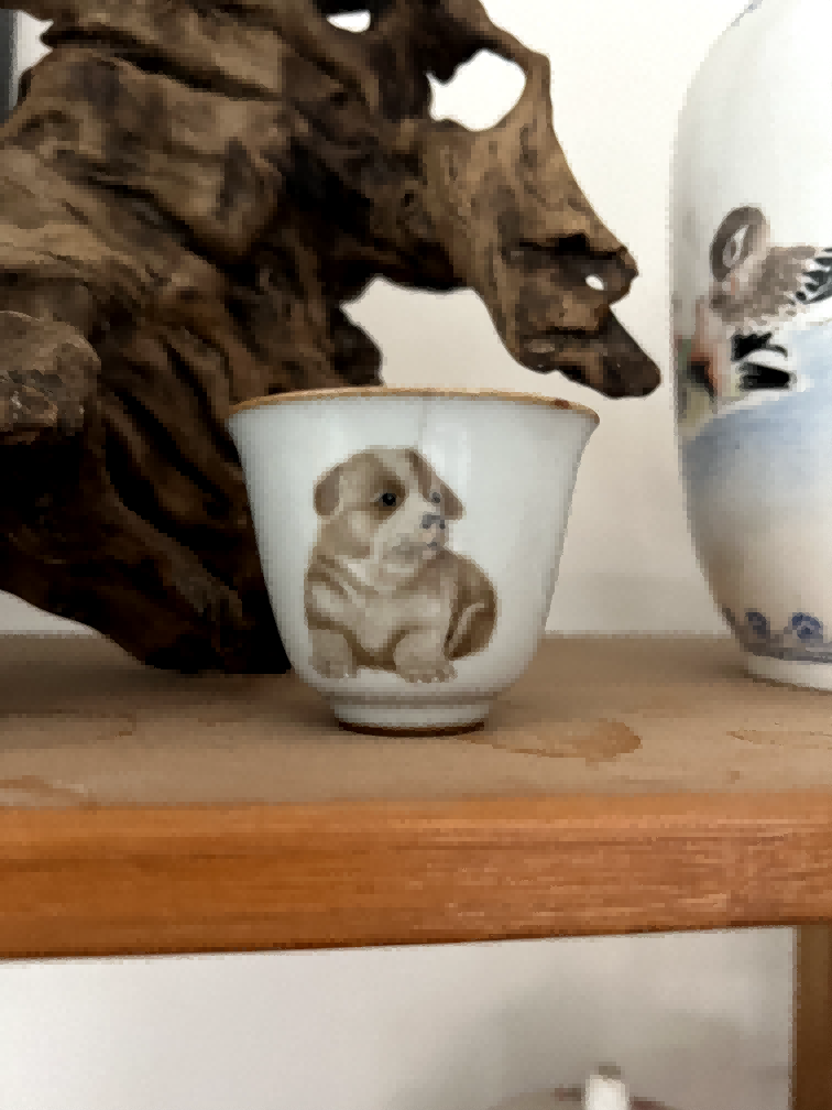 白釉粉彩萌犬纹杯
