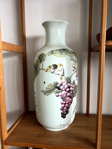 豆青釉粉彩花鸟葡萄纹...