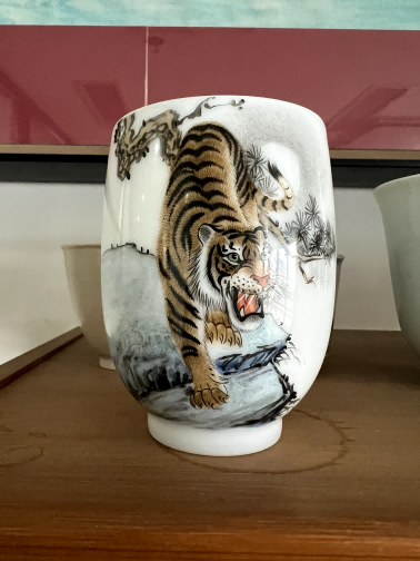 白釉粉彩虎纹杯-大晖