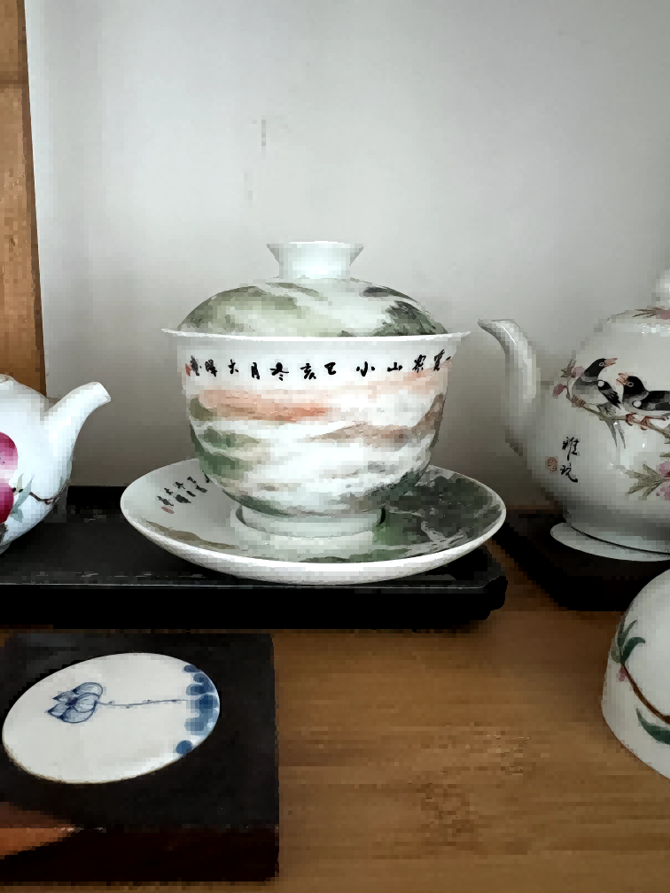 粉彩山水题字纹盖碗