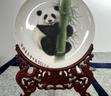 《晶釉萌熊抱竹瓷盘》...
