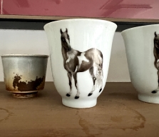 白釉墨彩马纹杯-大晖