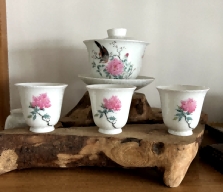粉彩牡丹花鸟纹茶具套...