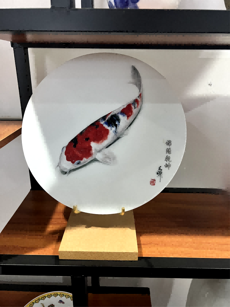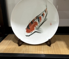 《白釉丹鲤图》瓷盘摆...