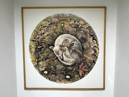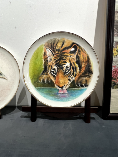 《卧虎饮泉》瓷板画装...