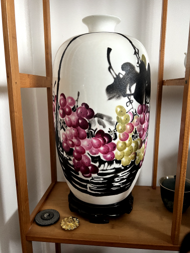 墨彩矾红葡萄纹瓷瓶-...