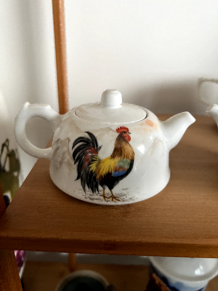 粉彩雄鸡纹茶壶