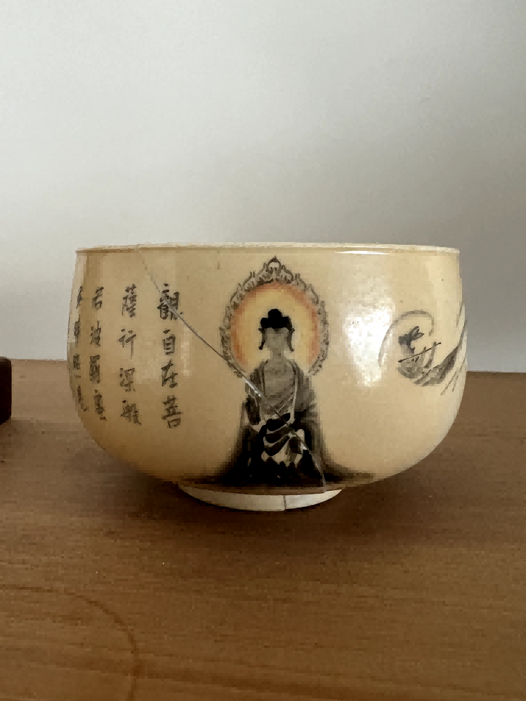 墨彩观音题字纹瓷碗-...